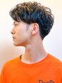 センターパートでラフにかき上げたマッシュスタイル。クセが無い場合は、アイロンを入れるか、ゆるめにパーマをかけると動きがついてセットしやすくなります。