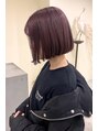 タイトなボブとビターに透けるカシスチェリー。ダブルカラーは抜き過ぎず、ライトブリーチで薬剤を分け、調整しながらしますので退色後も明るくなり過ぎずおすすめです○