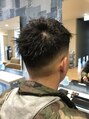 トップは立つくらい長さを残し、ツイストパーマをかけてスタイリングをしやすくしました。周りはスキンフェードに仕上げています。