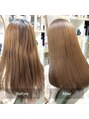 パサつきやごわつきを解消しながら染める質感カラー!明るいカラーにありがちな硬さやごわつきを柔らかくもっちりした質感に!水分量が増えると柔らかさやスタイリングのしやすさに繋がります!