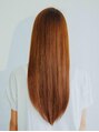 ナチュラルなロングストレートスタイルです!!ロングだと重く見えやすくなりますが、レイヤーを入れてカットで軽くみせてくれます。また、明るめのオレンジカラーでお顔の印象も明るくします