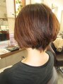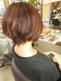 前回、髪の毛全体にパーマを今回はミディアムのボブベースにカットにハイライト。前回かけたパーマを活かしてスタイリングしました。