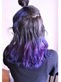 グラデーションカラーのブルーメインのヴァイオレット、ピンクを少々、トップはダークグレージュで。