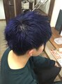 ブリーチオンカラーで、ディープブルーに!ブルーは黄味を消さないと緑になるのでブリーチ2回後グッバイイエロー!ONディープブルー根元は暗めでグラデーション。