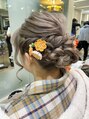 成人式、結婚式やパーティー等のアレンジヘア。肩下までレングスがあればゆるふわにまとめられます!