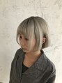 ホワイトカラーショートボブダブルカラーでホワイトカラー。ショートよりのボブで丸みをつけたスタイル