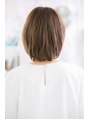 前下がりで輪郭をカバーして小顔に見せたナチュラルボブ。シンプルな仕上がりとツヤ透明感でイノセントな雰囲気に。透け感バングやレイヤーで軽さを出しているので、黒髪や暗髪でも重めスタイルになりません。センターパートや耳かけも大人かわいい♪
