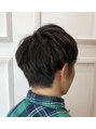 メンズカット&カラーサイドは2ブロック全体は襟はすっきりとした清潔感のあるスタイルです☆ワックスでセットがしやすいようにすいて軽くしてあります!カラーは赤みを抑えるグリーンマッドカラー