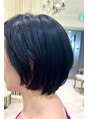 黒髪ストレートのツヤボブスタイルを、少しアシンメトリーに☆極端なアシンメトリーではなく、緩やかな前下がりと、前上りの遊び心のあるアシメスタイル☆前上りサイドを耳にかけるとすっきりとしてまた違った表情も楽しめます!