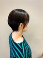 お客様スナップ、耳にかけてタイトにしたショートスタイル。顔まわりのおくれ毛でいろいろと調整できます。