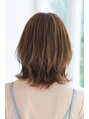 透明感とツヤのあるブラウンベージュカラーで動いた時にチラっと見える軽い束感がポイントです。表面のレイヤーをいれすぎず少しだけ軽くするだけでふんわりと抜け感がでます。