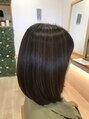 シンプルなボブスタイルにサイエンスアクアで上質なツヤとサラサラ手触りを実現♪カラーは落ち着いたナチュラルなアッシュ系カラーに細身のハイライトで柔らかさ入れてます☆