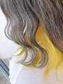 インナーをブリーチ、それ以外をグレージュカラーに。インナーにはレモンイエローを入れておしゃれなインナーカラースタイル☆ブリーチカラー得意なのでお任せください!