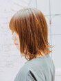 ヘアカラーは明るめのブラウンをベースにしています。スタイリングは太めのコテを使って全体的に外ハネのスタイルにしていきます。