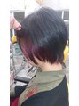 1度ブリーチで金髪にしてから下の内側だけ赤系の紫で、他の部分はグレー色に染めてます