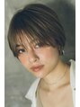 ナチュラルなテクスチャーが今っぽいショート。カットで量感を落として柔らかさを出し、顔まわりは軽さと束感をつけて。前髪はシースルーバングにして自然なダウンスタイルに。カラーは9レベルのラテカラーをベースにハイライトでアクセントを。