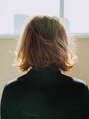 普通の切りっぱなしボブですが、色味スタイリングで大人っぽく見せることができます!!ナチュラルなベージュ系のカラーですが、根元は若干暗くすることで立体感ができます。全体的に外ハネし、表面には少し巻くだけでも印象が変わります。