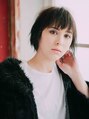 前髪、顔まわりにレイヤーが入ったボブスタイルです。短く丸いシルエットに重さを出さないために軽さを出しバランスを作っています。カラーはハイライトを入れたオンカラー。グリーンマット系です。