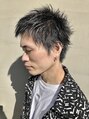 毛束感ザクザクの無造作ベリーショート。少しロックを感じさせる様な雰囲気に仕上げています。男性のベリーショートは幼くなりがちですが、キチンとスタイリングすると、ガラッとオシャレになります。黒髪でも動きが出せるので、ビジネスシーンにもOKです。