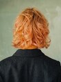 数回ブリーチした髪にほんのり強すぎないピンクが香る色味が絶妙!!全体的にレイヤーが入ったウルフスタイルなので動きがでてスタイリングの幅が広がり、毎日楽しめるスタイルになります。今回は強めのカールで雰囲気を出し、少しクールな印象になります。