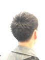 サイドとバックはグラデーションで刈り上げ。毛先の動きを出すため、質感調整。