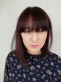 目ギリギリの幅広い前髪で強さとクールさを表現ダークなピンク系で女性らしさを出したストレートボブ