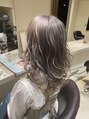 新しく導入したケアブリーチにより、圧倒的にダメージを減らしたダブルカラーです。モデルは4回目のブリーチでほぼ白まで抜いた髪に淡いシルバーと寒色ピンクを入れることによりホワイト系に。コテで巻くと柔らかい質感になります。