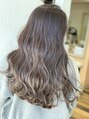 ニュアンスでハイライトが入っている、大人グレージュカラーです。一見暗めですが透明感抜群です。色落ち過程も楽しめるカラーになっています。