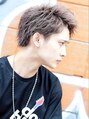 男らしくアッブバングでスッキリ爽やかヘアに!サイドの隠し2ブロックとサイドのリバース感で好印象にゆるめのミックスパーマでスタイリングもグッと楽になります!カラーは9トーンのショコラグレージュ