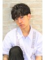 大人気のスパイラルパーマ×前下がりマッシュスタイルです!ゆるめのスパイラルパーマでやりすぎない色気のある雰囲気がカッコいい!クシャっとラフな無造作パーマでスタイリングも簡単!