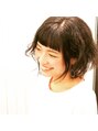 ナチュラルアッシュブラック系で透け感を取り込んだショート。トリートメントをつけてアイロンで軽く巻き、耳かけして可愛さをプラス。