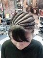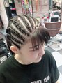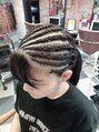 真っ直ぐ編まず、アシメなブロッキングのコーンローです。前髪は残しています。