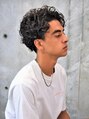 メリハリのある、ミディアムパーマスタイル!上げ下ろし自在の2Wayスタイル上げバージョンです。無造作なウェーブで動きを出し、セミウェットに仕上げてクールな印象に!カラーも暗めのアッシュで、まるで外国人のくせ毛のような質感を意識しました!