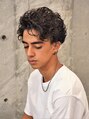 メリハリのある、ミディアムパーマスタイル!上げ下ろし自在の2Wayスタイル上げバージョンです。無造作なウェーブで動きを出し、セミウェットに仕上げてクールな印象に!カラーも暗めのアッシュで、まるで外国人のくせ毛のような質感を意識しました!