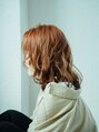 前髪長めのひし形フォルムのレイヤースタイル!カラーは全体ブリーチを1回から2回してオレンジ系カラーをオンカラーしています☆髪の毛の量が多い人は量感調節を!!【堀之内/京王堀之内】