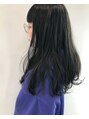 ダークブルーアッシュベースに、右サイドのみしっかり太めハイライト。左右で見え方が変わる個性派カラーです。