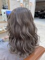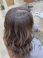 表面をメインにシークレットハイライトを入れたらイルミナカラーのシャドウMIXで根元のみ白髪染め、中間から毛先にかけてはシャドウなしで更に透明感アップ◎