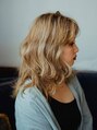 ダブルカラーで、透明感のあるハイトーンのベージュカラーです!カットはレイヤーを入れて動きを出します。フロントはセンターに分けます。仕上げはウェーブを出してコテで巻きます。毛先は外ハネに、するのがポイントです。