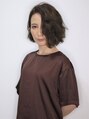 かき上げるボブパーマ。色気のある大人スタイル。光沢のあるカラーでクールな大人カラーに。