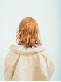 前髪長めのひし形フォルムのレイヤースタイルです。カラーは全体ブリーチをしてオレンジ系カラーをオンカラーしています。髪の毛の量が多い人は量感調節を。