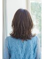 透明感のあるアッシュブラウンカラーに大きなニュアンスウェーブで大人かわいく。TOPからボリュームをつけてひし形シルエットでよりバランスよく小顔になるよう仕上げました。