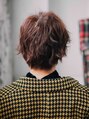 大胆に切り込んだサイドのマッシュラインがポイントのショートスタイル。ワイドバングのようにサイドまでカットしているので、肌の空間があいてすっきりとした印象になっています。毛先はカールをつけてあそばせることで動きをプラス。