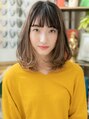 【スタイルは★ブックマーク★が便利】前下がりのくせ毛風カールでふわっと輪郭をカバーして小顔に見えるように。大人かわいい厚めバングがポイントのふわミディ。斜めバングや耳かけでアシンメトリーにイメチェンもモテ髪型。(メイク担当:北浦和店棟方)