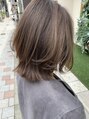 今期流行りのカーキアッシュオススメです!日本人特有の赤味も消せて透明感もバッチリです。ブリーチなしで赤味消すならカーキアッシュが一番!切りっぱなしボブにレイヤーを入れて動きのあるスタイルへ。