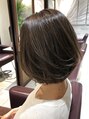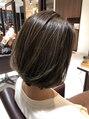 くすみのあるスモーキーなグレージュに!少しラベンダーや、ブルーも入ってます。シンプルなボブスタイルには細めにハイライトを入れてると、オシャレに見えます。もっと素敵に! ぜひお任せ下さい!!
