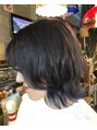 ボブベースのウルフスタイルカラーは全体をブリーチしてから落ち着きのあるネイビーブラックにしました