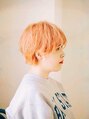 マッシュベースのショートスタイル!全体的にラフ感が出るように毛先にランダムにハネを加えてカジュアルなイメージに!ヘアカラーはショートにピッタリのペールオレンジ系のハイトーンカラーで小慣れショートがオススメ!