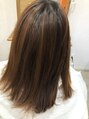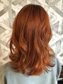 ブリーチ1回後、オレンジブラウンをオンカラー♪軽めミディアムヘア。
