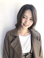 透明感の高いミルクティーベージュに、ロングボブで軽さを出しています。