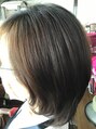 ふんわりひし形シルエットになるように、ゆるめのパーマを。オレンジブラウンとアッシュ系カラーを塗り分けて立体感を出してみました。